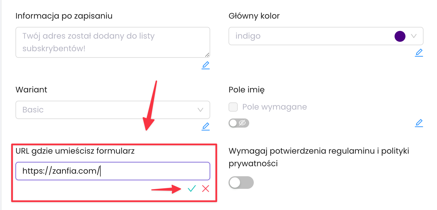 | Link do polityki prywatności | opcjonalny link do regulaminu |