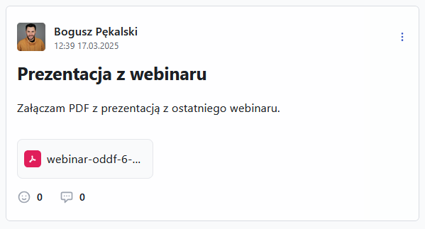 Po wgraniu plik będzie widoczny pod treścią posta.
