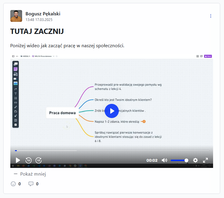 3. Wideo zostanie dodane bezpośrednio do posta wraz z możliwością natychmiastowego odtwarzania.