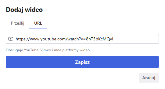 2a. Możesz również dodać wideo, które zostało zamieszczone na YouTube lub Vimeo.