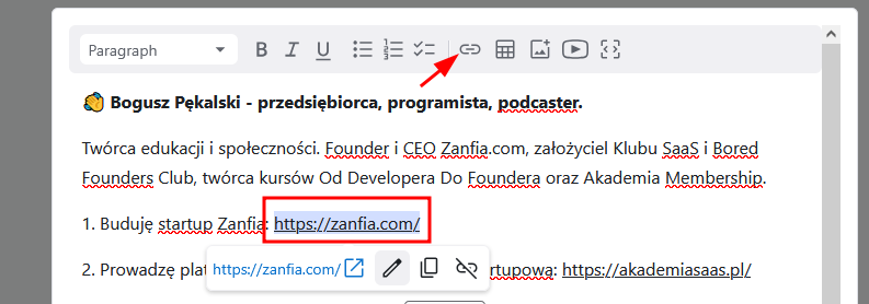 Dodawanie linków w treści posta #