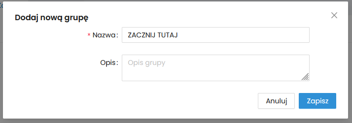 2. Wypełnij formularz dodawania grupy.