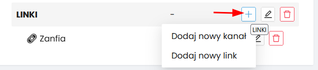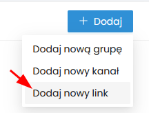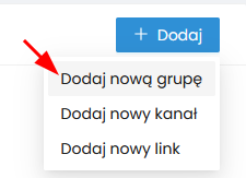 Aby dodać kanał lub link bezpośrednio do konkretnej grupy kliknij ikonę „plusa” obok nazwy danej grupy.