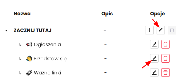 Aby edytować dany element kliknij ikonę „ołówka” w opcjach.