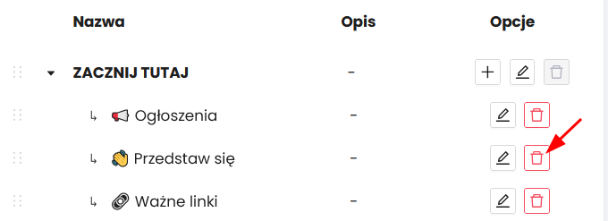 Aby usunąć dany element kliknij ikonę „kosza” w opcjach.