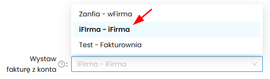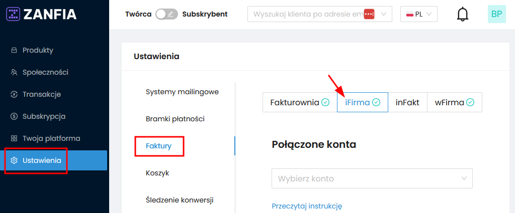 1. Przejdź do Ustawienia -> Faktury -> iFirma. #