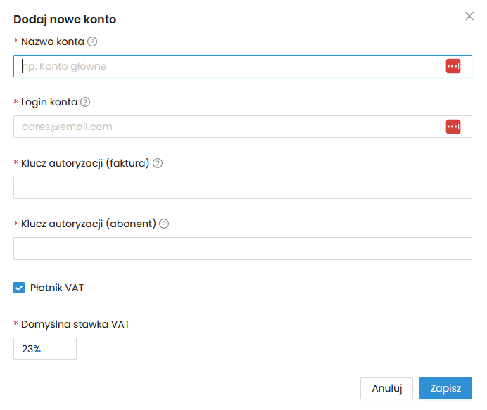 Nazwa konta – Wpisz dowolną nazwę, która będzie identyfikowała Twoje konto.