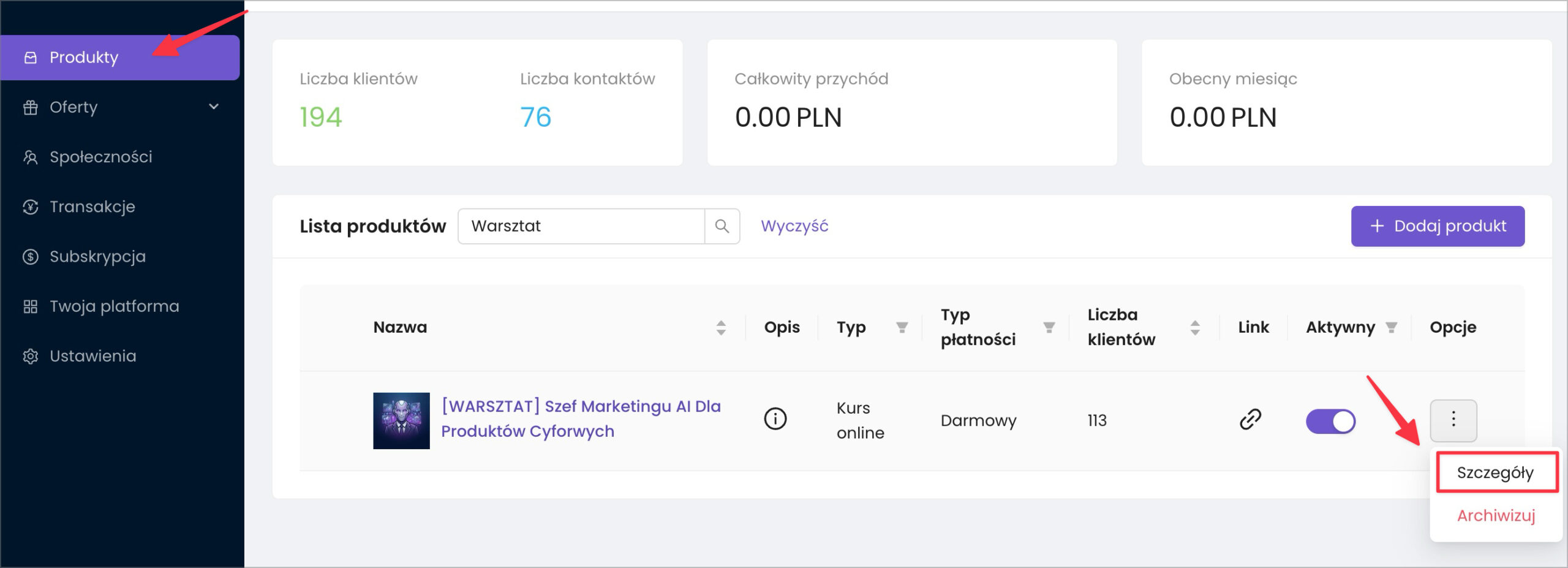 W panelu Zanfii przejdź do Szczegóły produktu -> Integracje.