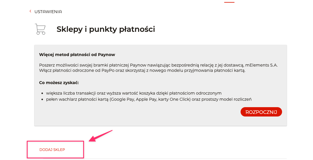 - Przejdź do zakładki Sprzedaż -> Sklepy i punkty płatności.