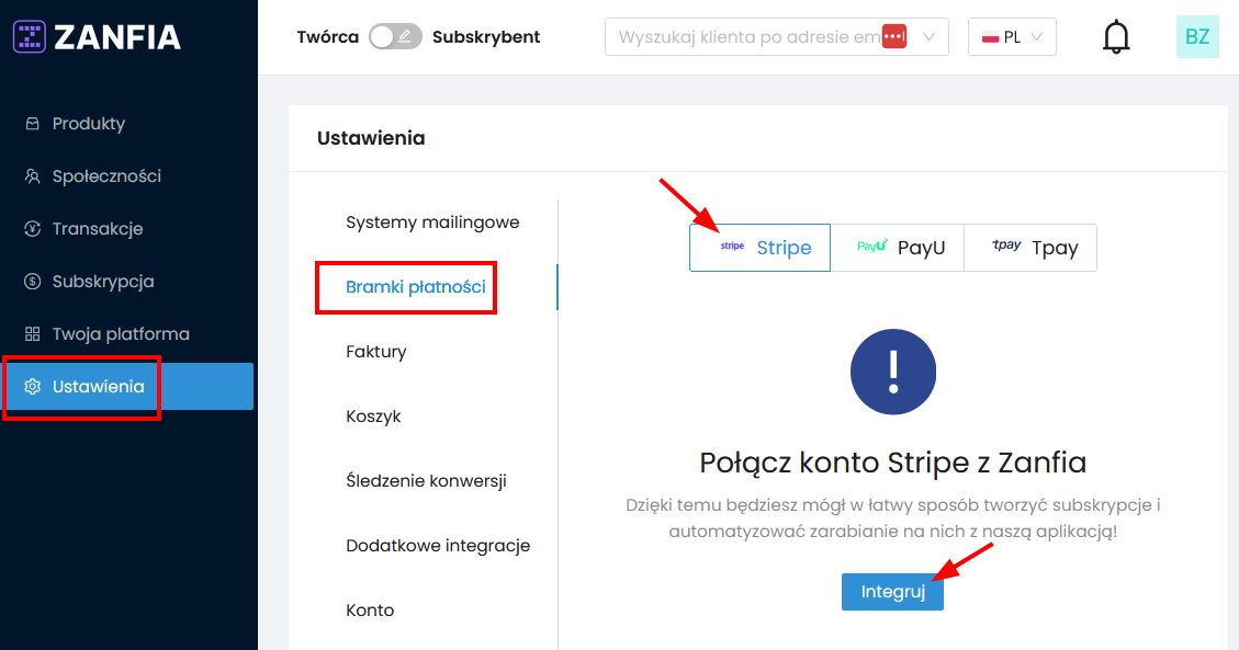 1. Jak zintegrować bramkę Stripe w aplikacji Zanfia? #