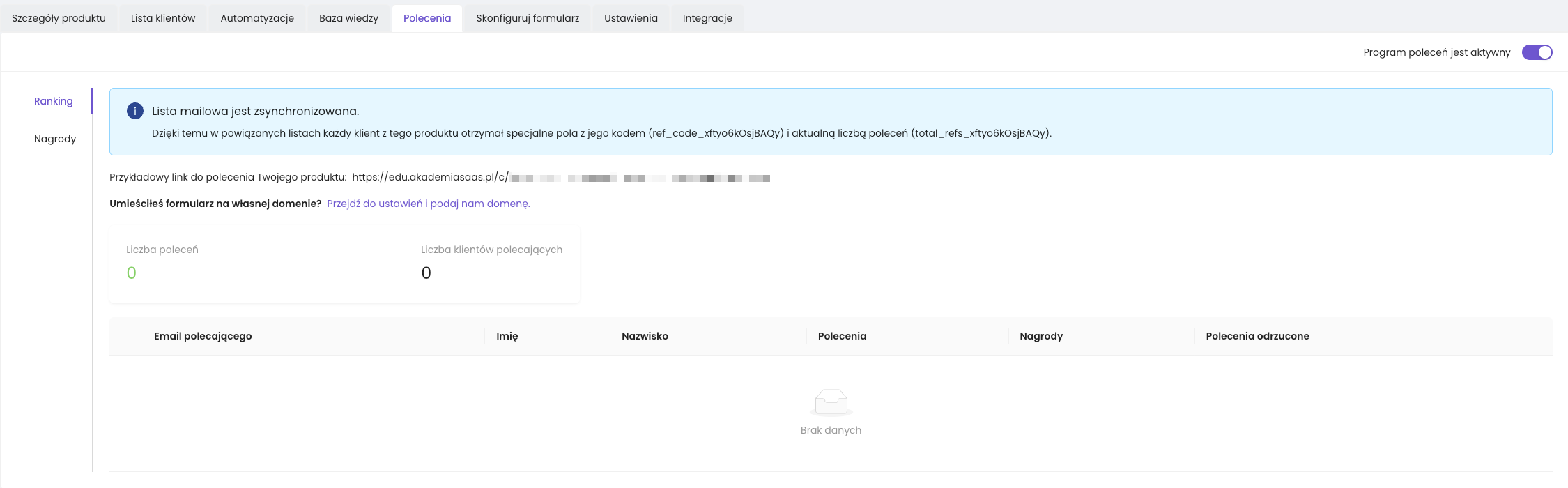 💡 Podpowiedź: Regularnie sprawdzaj ranking, aby wyłapać najbardziej aktywnych polecających. Możesz ich nagrodzić dodatkowo lub zaprosić do współpracy.