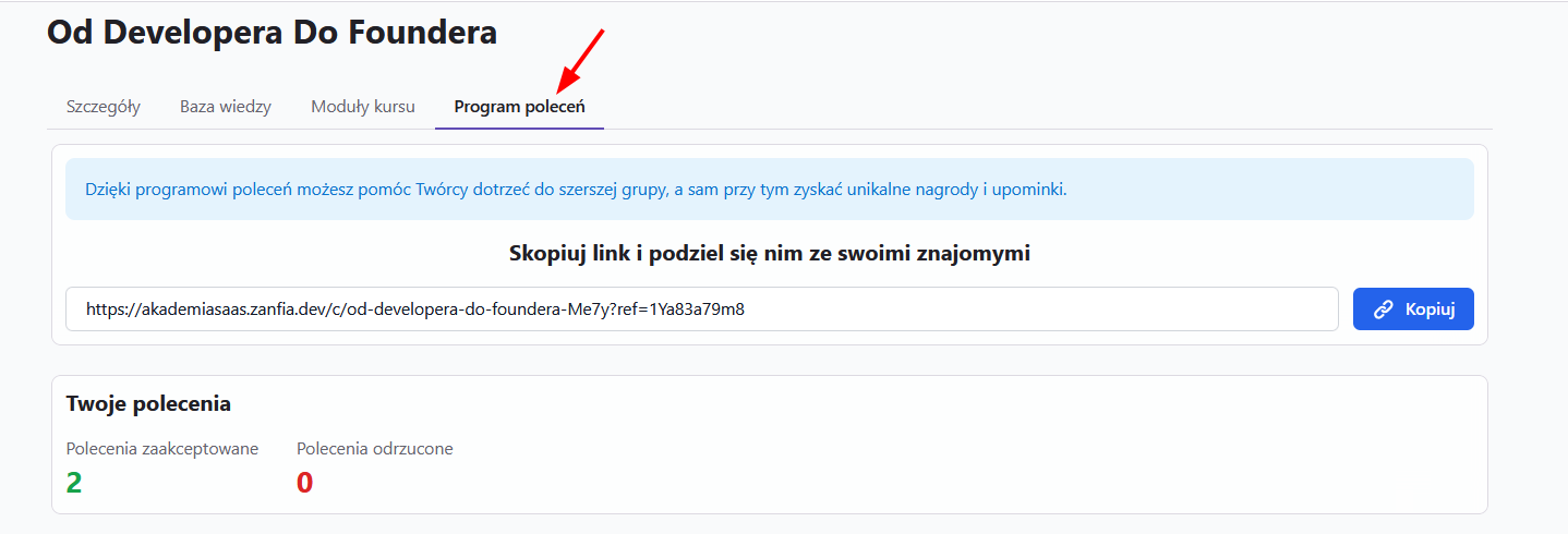 ⚠️ Ważne: W przypadku produktów płatnych link polecający kieruje bezpośrednio do koszyka – polecona osoba może od razu dokonać zakupu.