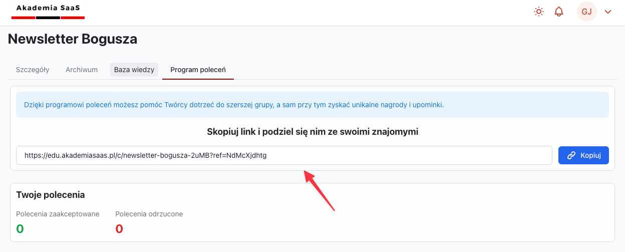 💡 Podpowiedź: Dodaj link polecający na końcu każdego newslettera – subskrybenci będą mieli stały dostęp do swojego linku.