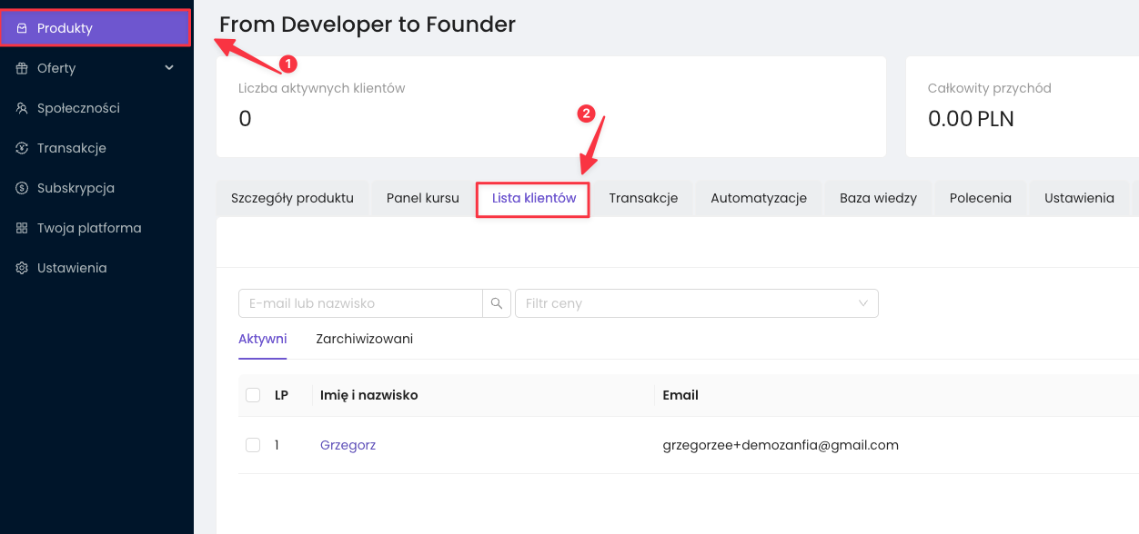 1. Przejdź do listy klientów produktu #