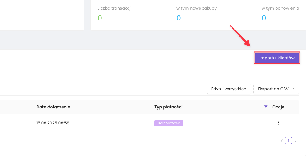 Kliknij przycisk Importuj klientów w prawym górnym rogu.