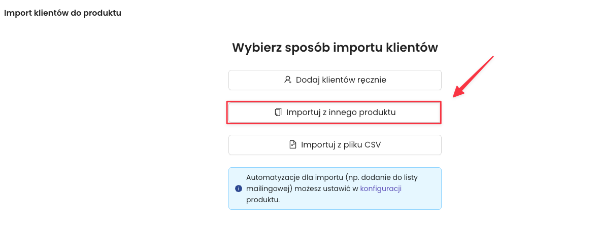 Jeśli posiadasz już klientów w jednym ze swoich produktów w Zanfii (np. w darmowym kursie lub starszej edycji szkolenia), możesz ich automatycznie przenieść lub skopiować do innego produktu bez konieczności zabawy z plikami CSV.