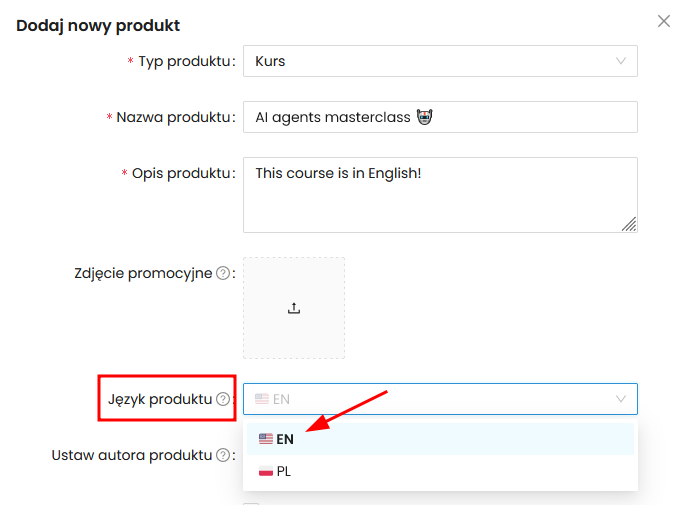 1. Podczas dodawania produktu wybierz preferowany język. #