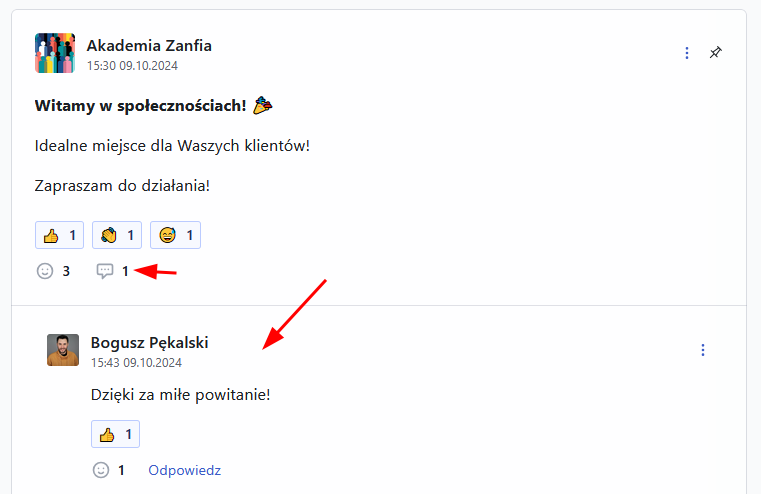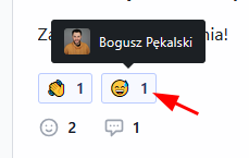 Aby dodać reakcję (emoji) do posta lub komentarza kliknij ikonę 🙂 pod treścią.
