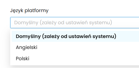 - Domyślny (zależy od ustawień systemu) – platforma domyślnie w języku przeglądarki klienta (z możliwością zmiany)