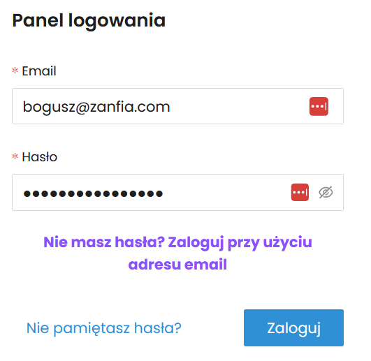 2. Podaj email i hasło, które zostały ustalone podczas rejestracji.