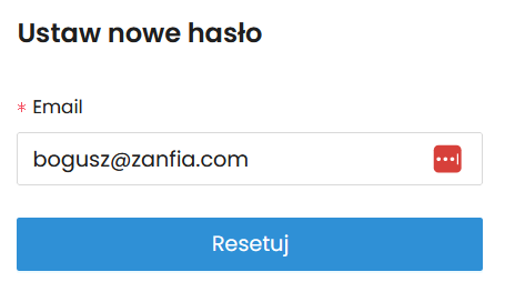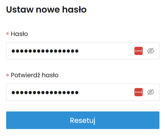 5. Podaj nowe hasło i kliknij „Resetuj”.