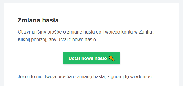 4. Na podany adres email przyjdzie mail z linkiem do formularza ustalania nowego hasła.