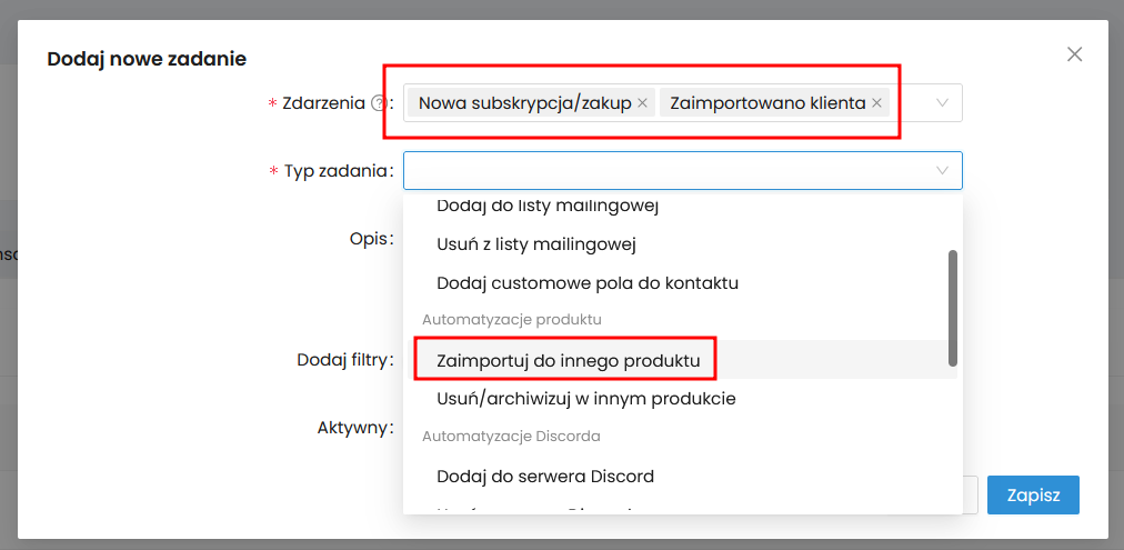 7. Przetestuj automatyzację importując się do produktu na cenę pakietu. #