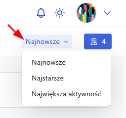 Nad listą postów znajduje się rozwijane menu, z poziomu którego możemy zmienić kolejność wyświetlania postów.