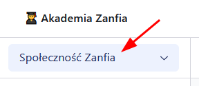 W lewym górnym rogu panelu znajduje się menu rozwijane z listą wszystkich społeczności dostępnych na platformie, do których masz dostęp.
