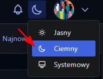 W dowolnym momencie możesz zmienić motyw kolorystyczny (jasny, ciemny) klikając ikonę 🌙 w prawym górnym rogu panelu.
