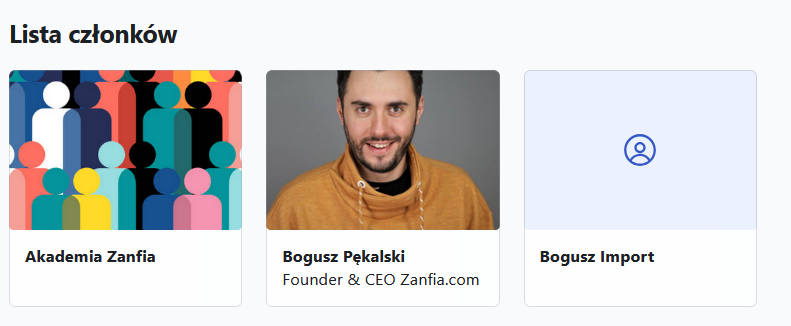 Po kliknięciu w przycisk z liczbą członków wyświetli się lista ze szczegółami członków społeczności.