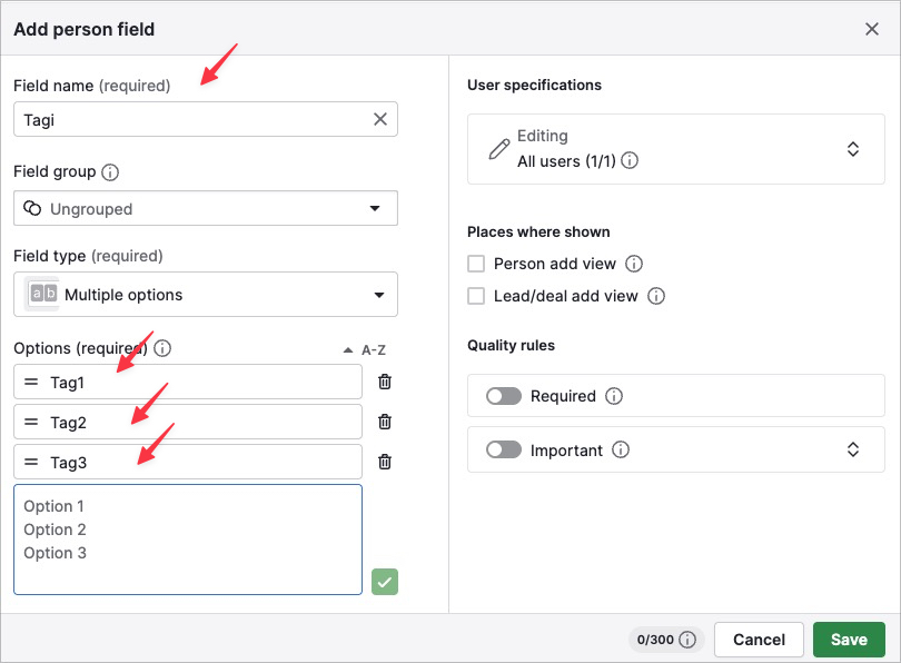 ⚠️ Wróć do Kroku 2–3 i upewnij się, że utworzyłeś oba pola typu “Multiple options” w zakładce Person. ⚠️