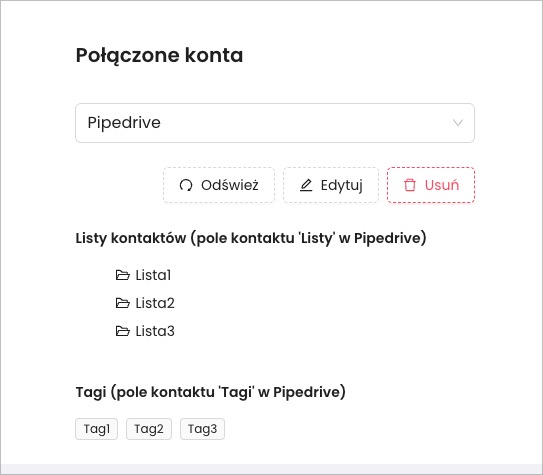• Nazwa połączenia – dowolna nazwa (np. “Pipedrive”)