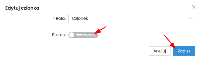 4. Zmień status na Nieaktywny.