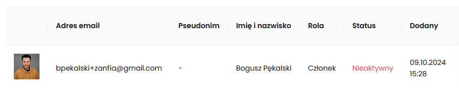 W każdej chwili możesz przywrócić dostęp do społeczności dla danego użytkownika zmieniając status na „Aktywny”.