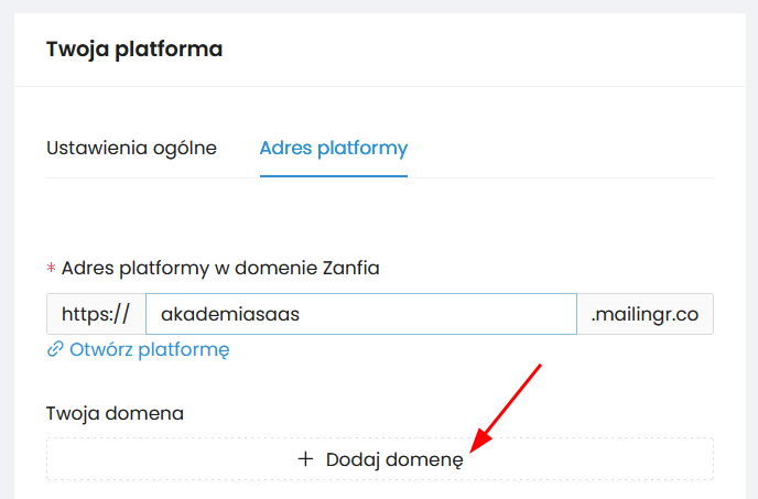 2. Wybierz zakładkę „Adres platformy” i kliknij „Dodaj domenę”