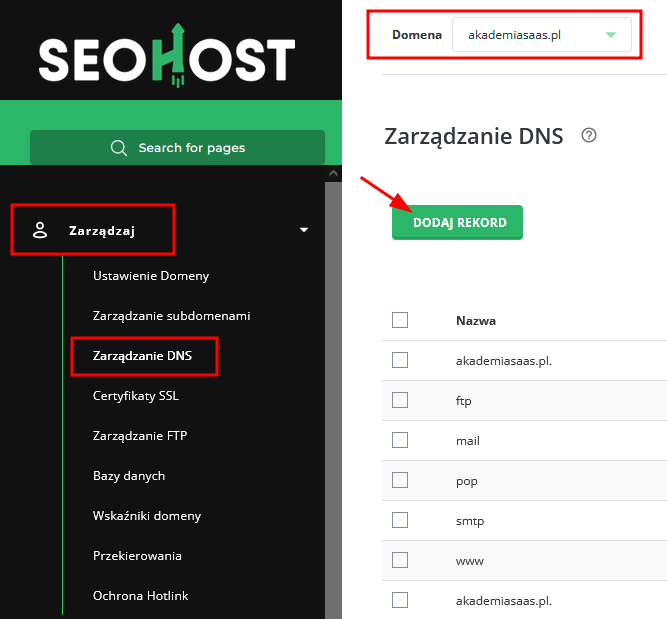 5. Dodaj odpowiednie rekordy DNS w ustawieniach domeny (tam gdzie została kupiona).